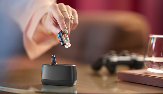 Los ReSound Enzo IA se alimentan mediante una batería recargable de ion-litio con un consumo muy reducido que les permite funcionar perfectamente entre 20 y 28 horas dependiendo del nivel de uso del streaming. Lo único que debes hacer es colocarlos en el cargador inductivo, sin preocuparte por conexiones difíciles. Además, su cargador de escritorio tiene un diseño elegante y moderno ideado para que no desentone con la decoración de tu hogar.